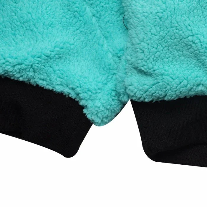 -Body: 53% cotton/47% polyester. Pocket bag knuckle side: 100% cotton. Hood Lining: 53% cotton/47% polyester.